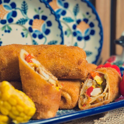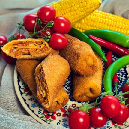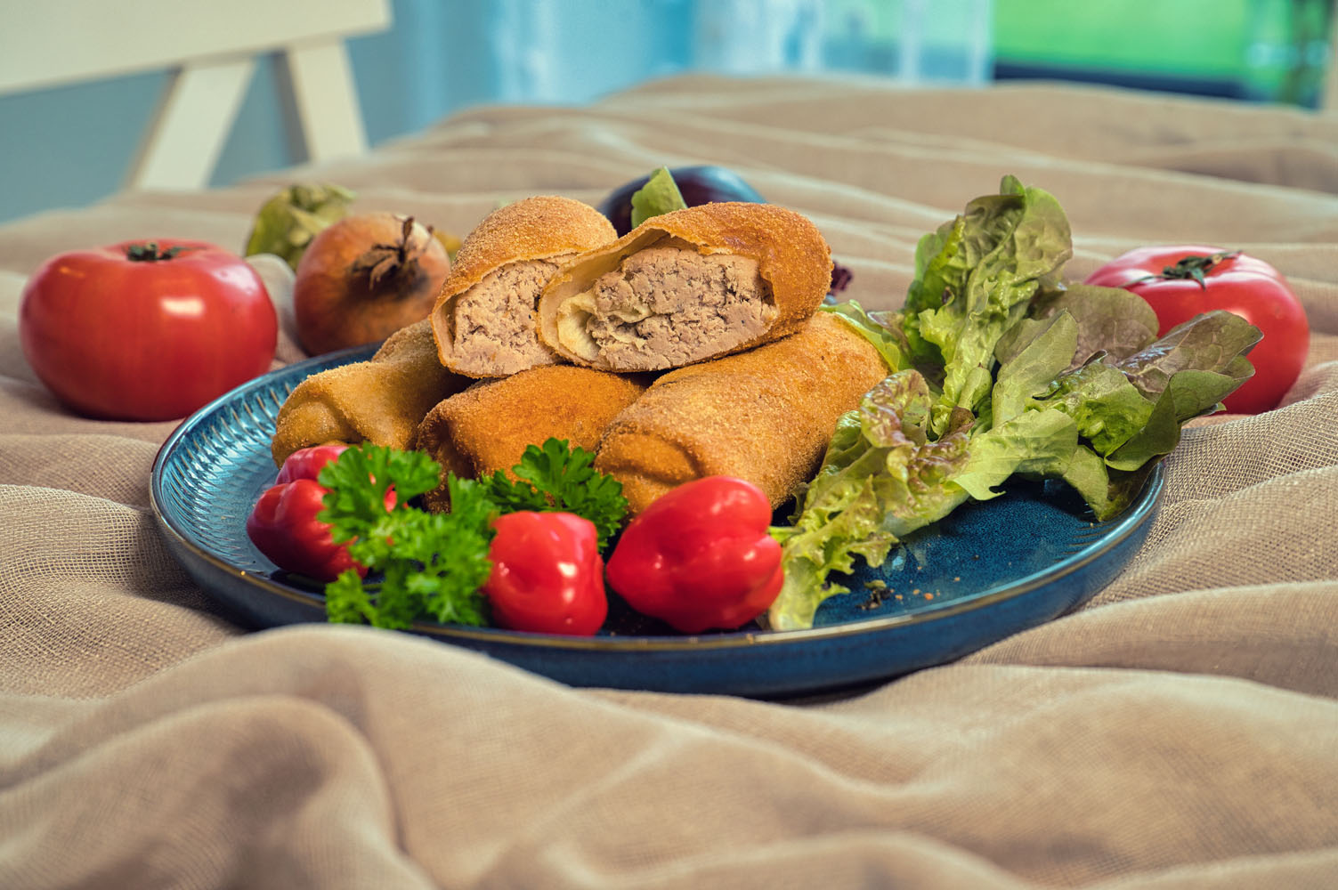 Produkt garmażeryjny z ciasta naleśnikowego z mięsem wieprzowym, smażony.