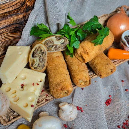 Z zewnątrz – złocisty, pachnący krokiet o delikatnie chrupiącej panierce. W środku – miękki, soczysty farsz z gotowanego mięsa, cebulki i warzyw, który rozpływa się w ustach.